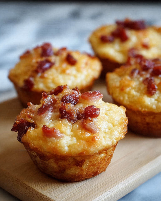 A delightful twist on traditional pancakes, combining the sweet aroma of maple syrup with the savory crunch of crispy bacon in muffin form.